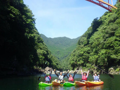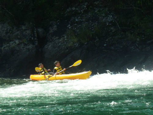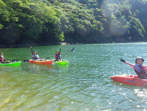 | 8:30〜9:00 | 宿にお迎えまたは、待ち合わせ場所に集合ポイントへ移動。出発準備。1日(半日)の流れの説明。カヤックの取り扱い方、パドリングの基本、転覆時の対処など丁寧にレクチャー。 実際に水上で練習し、楽しみながら上流へ進みます。 |