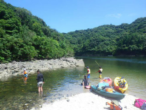 途中、カヌーを降りて、釣りやシュノーケリング ・沢を登ったりして遊ぶことができます。