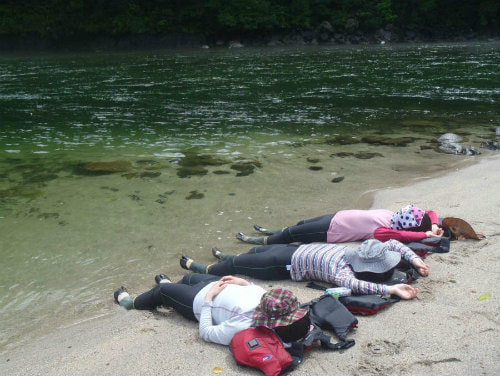 陸上でのレクチャーの後、鳥のさえずりや優しい風を肌で感じながら、ゆっくりと上流へ。