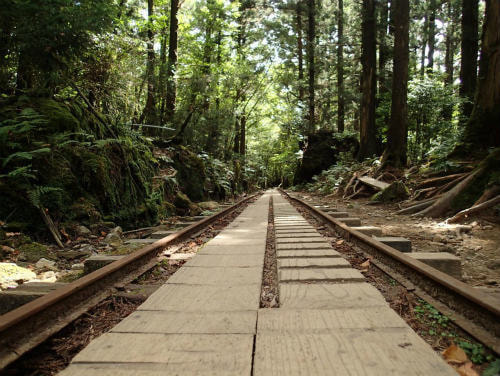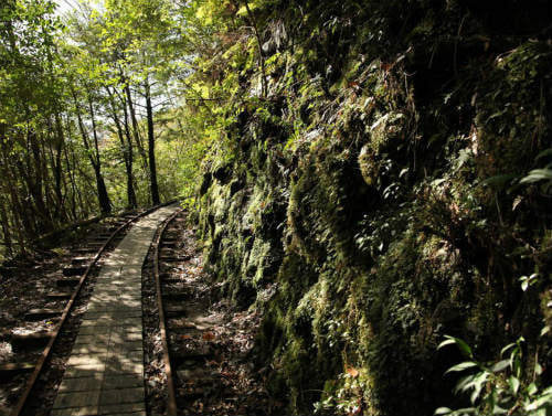 約8.3kmの緩やかな傾斜のトロッコ道と、所々急勾配ながらも整備された木道を中心に、岩や木の根を超え登って行く約2.7kmの山道を往復します。
