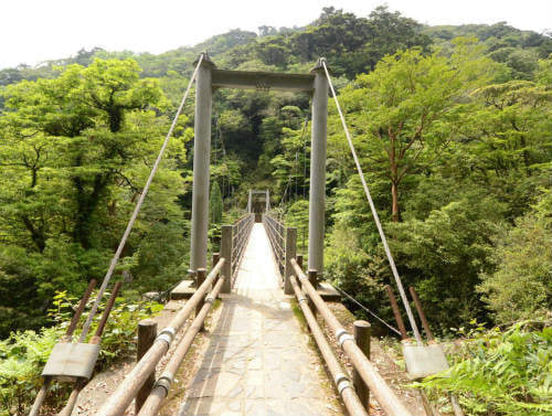 | 憩いの大岩・さつき吊り橋を越えて登山道へ。雰囲気が一気にかわります。 | |