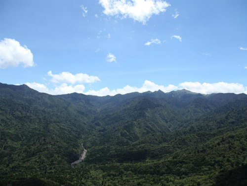 太鼓岩・・屋久島の最高峰宮之浦岳を始め、奥岳、太忠岳、安房川上流が一望できる。